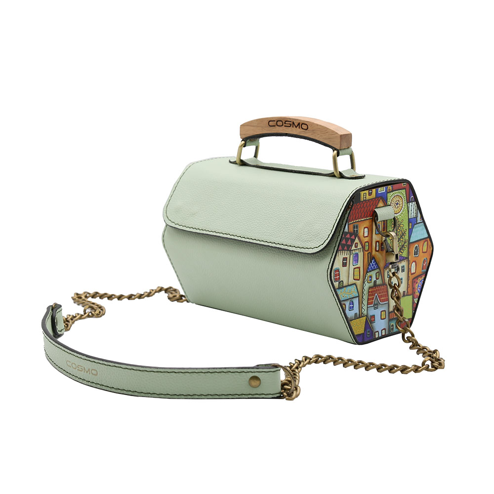 პროდუქტი: ტყავის და ხის ჩანთა პრინტით